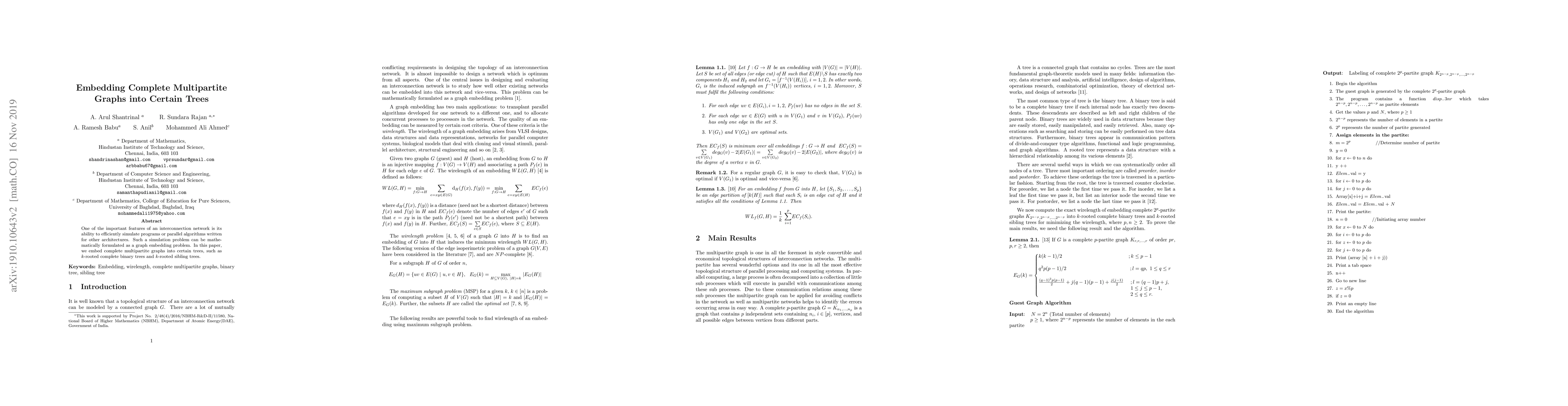 This paper investigates the embedding of complete multipartite graphs into specific types of trees, including $k$-rooted complete binary trees and $k$-rooted sibling trees, to enhance the efficiency of simulating parallel algorithms on interconnection networks.