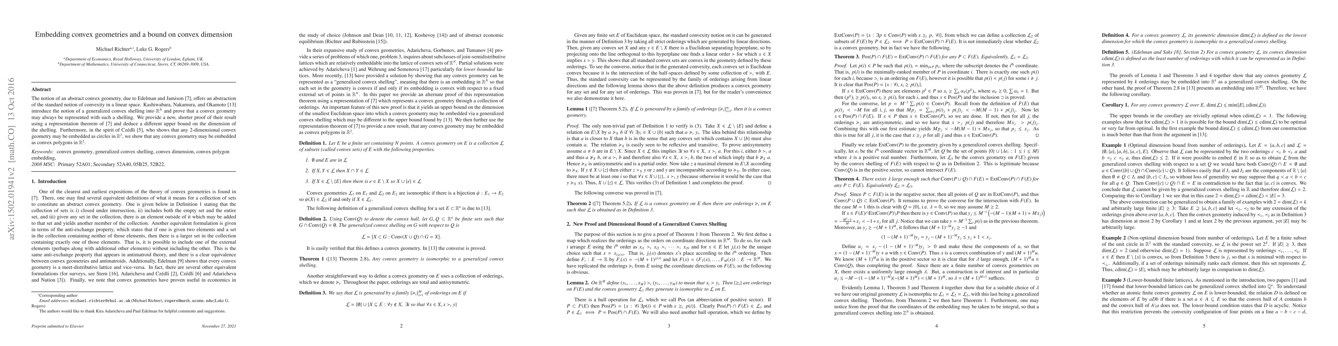The notion of an abstract convex geometry offers an abstraction of the standard notion of convexity in a linear space. Kashiwabara, Nakamura and Okamoto introduce the notion of a generalized convex shelling into $\mathbb{R}$ and prove that a convex geometry may always be represented with such a shelling. We provide a new, shorter proof of their result using a recent representation theorem of Richter and Rubinstein, and deduce a different upper bound on the dimension of the shelling.