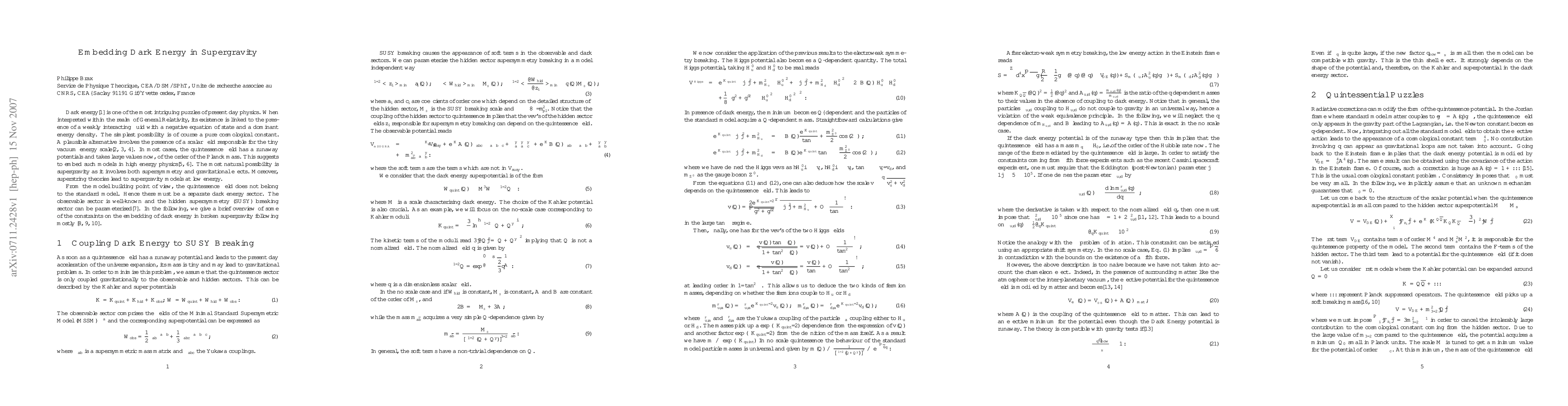 We give a brief overview of some of the constraints on the embedding of dark energy in supergravity.