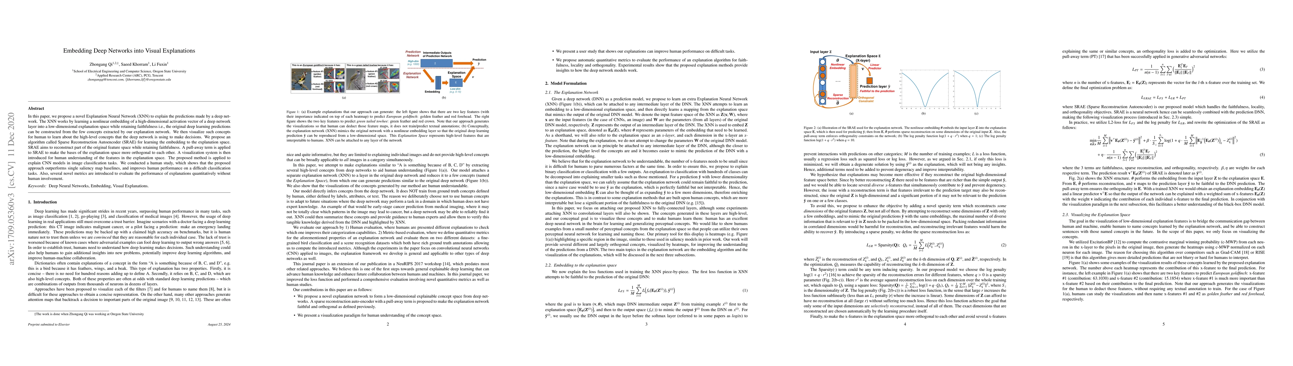 This paper introduces an Explanation Neural Network (XNN) to elucidate deep network predictions by embedding high-dimensional activations into a low-dimensional explanation space. The Sparse Reconstruction Autoencoder (SRAE) algorithm is used to achieve this while maintaining faithfulness, and a visualization system aids human understanding, outperforming saliency maps in human studies.