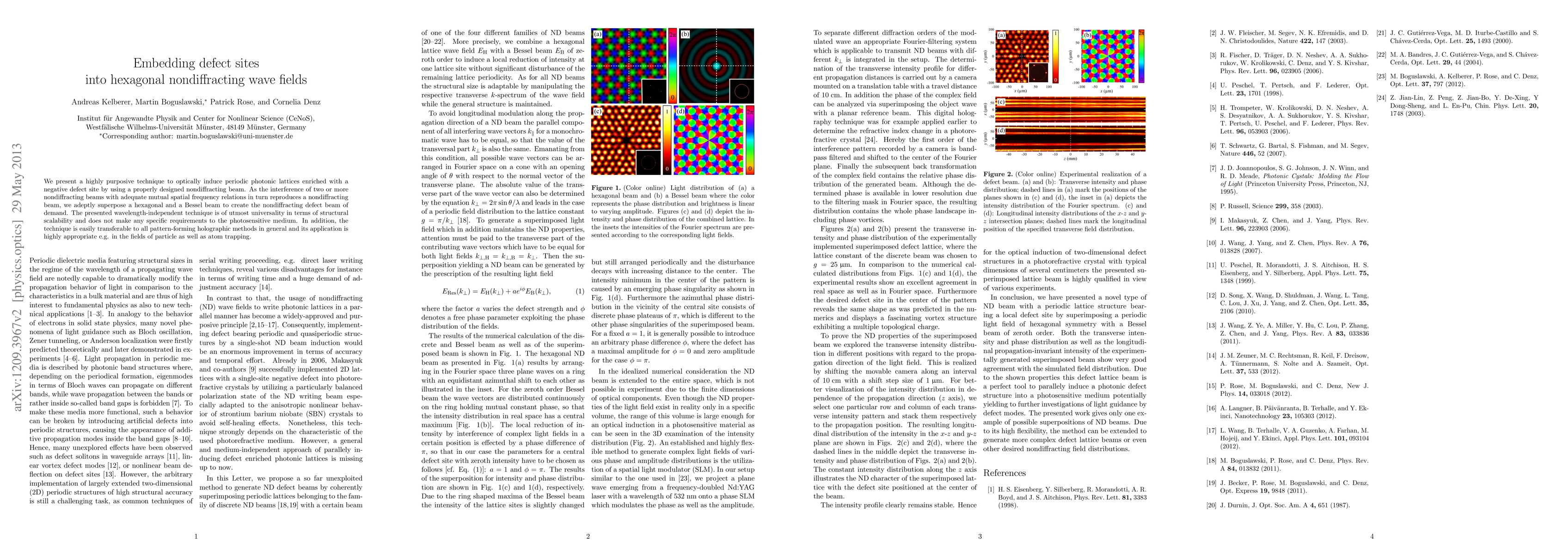 We present a highly purposive technique to optically induce periodic photonic lattices enriched with a negative defect site by using a properly designed nondiffracting beam. As the interference of two or more nondiffracting beams with adequate mutual spatial frequency relations in turn reproduces a nondiffracting beam, we adeptly superpose a hexagonal and a Bessel beam to create the nondiffracting defect beam of demand. The presented wavelength-independent technique is of utmost universality in terms of structural scalability and does not make any specific requirements to the photosensitive medium. In addition, the technique is easily transferable to all pattern-forming holographic methods in general and its application is highly appropriate e.g. in the fields of particle as well as atom trapping.