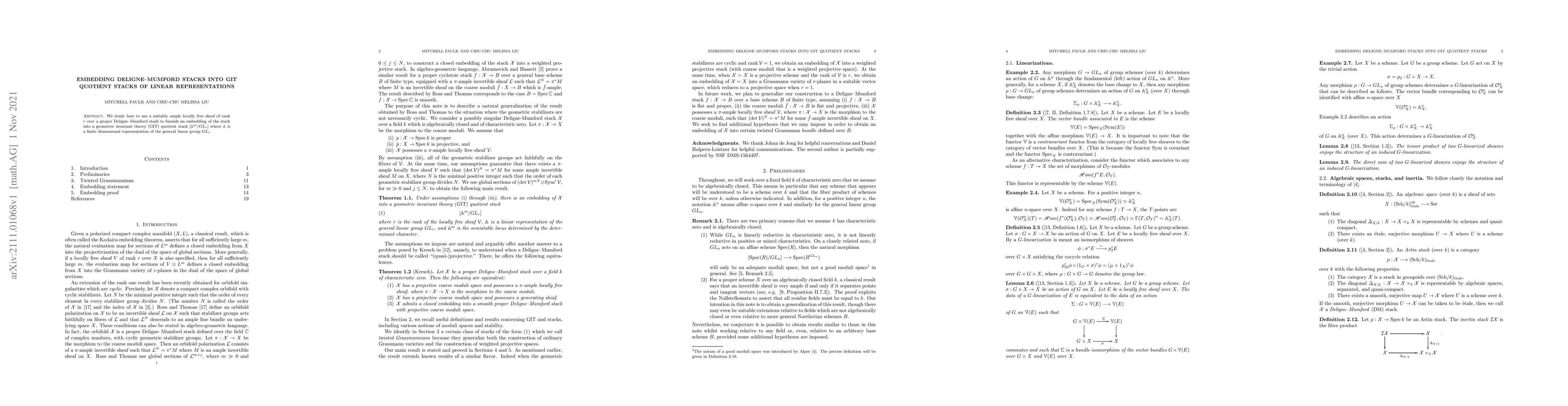 Researchers developed a method to embed Deligne-Mumford stacks into GIT quotient stacks using locally free sheaves, enabling the study of geometric invariant theory for linear representations of the general linear group.