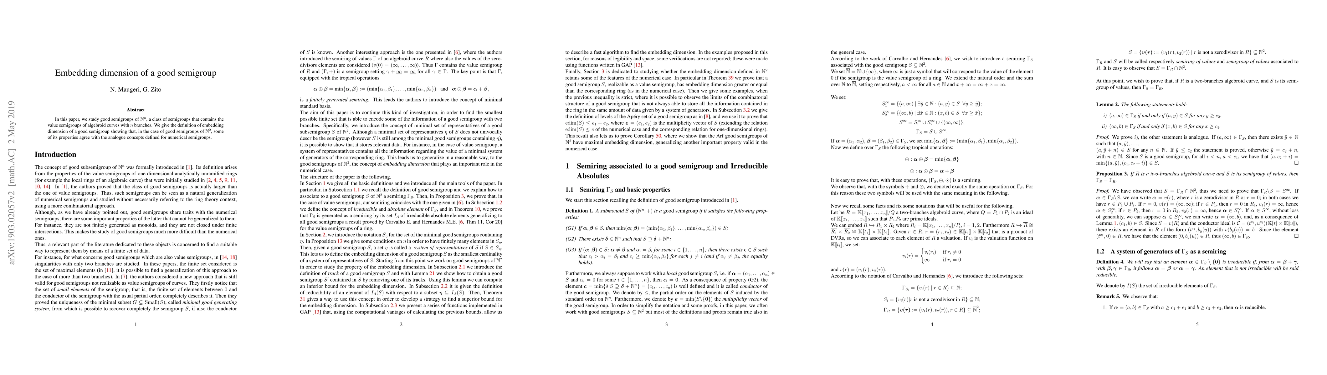 This paper defines the embedding dimension of good semigroups of \(\mathbb{N}^n\), focusing on \(\mathbb{N}^2\), and shows that their properties align with those of numerical semigroups. The study includes value semigroups of algebroid curves with n branches.