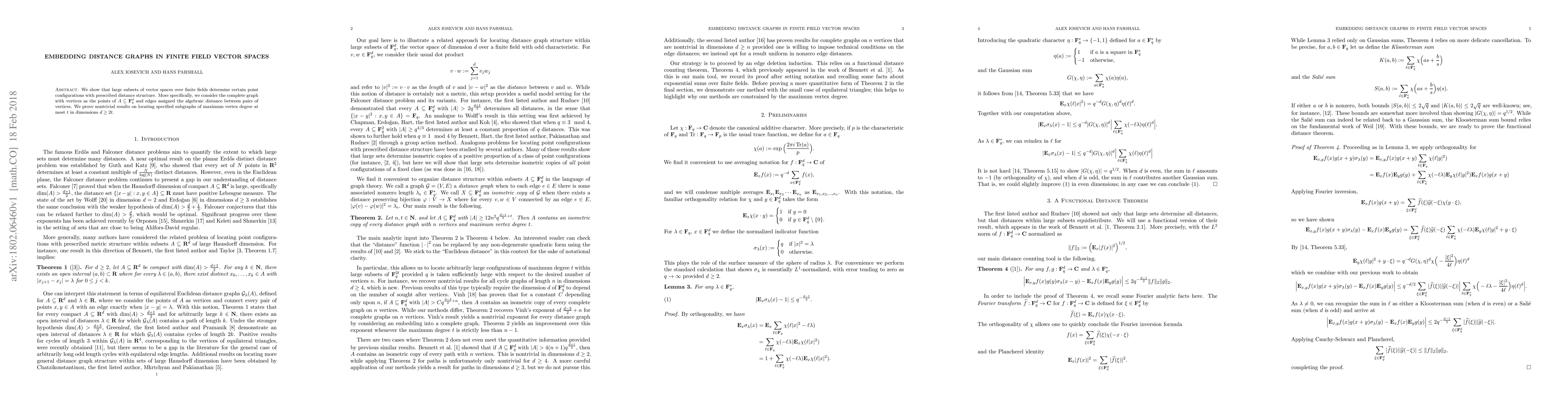 This paper demonstrates that large subsets of vector spaces over finite fields can form point configurations with specific distance structures, specifically focusing on subgraphs of the complete graph with vertex degree constraints in dimensions greater than or equal to twice the degree.