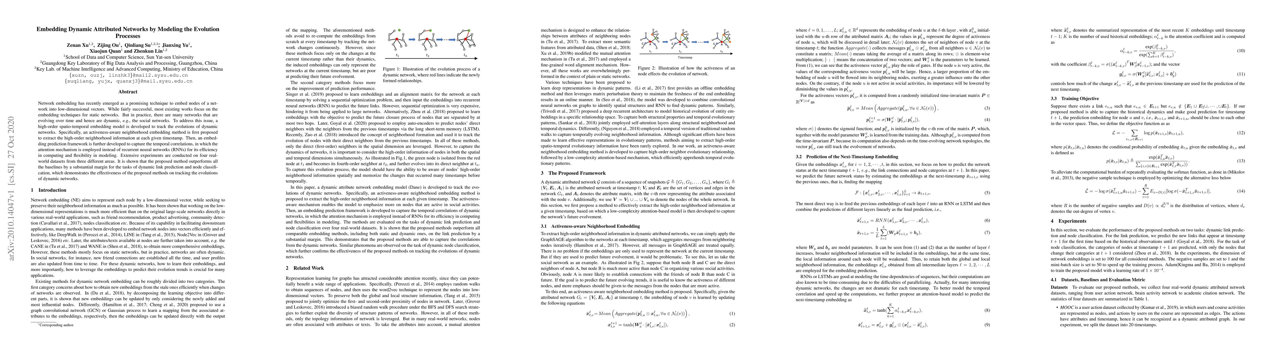 This paper proposes a high-order spatio-temporal embedding model for dynamic attributed networks, utilizing an activeness-aware neighborhood embedding and an attention mechanism to capture temporal correlations efficiently. The method outperforms baselines in dynamic link prediction and node classification tasks.