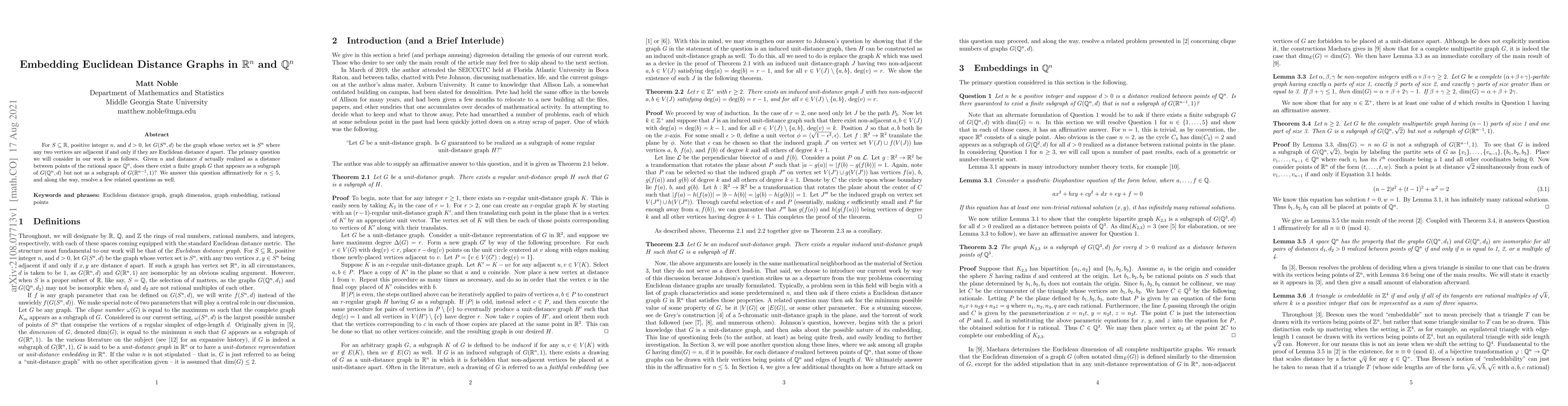 The paper presents new results on the Euclidean dimension of complete multipartite graphs and their embeddings in $\mathbb{Q}^n$, resolving related problems in the process.