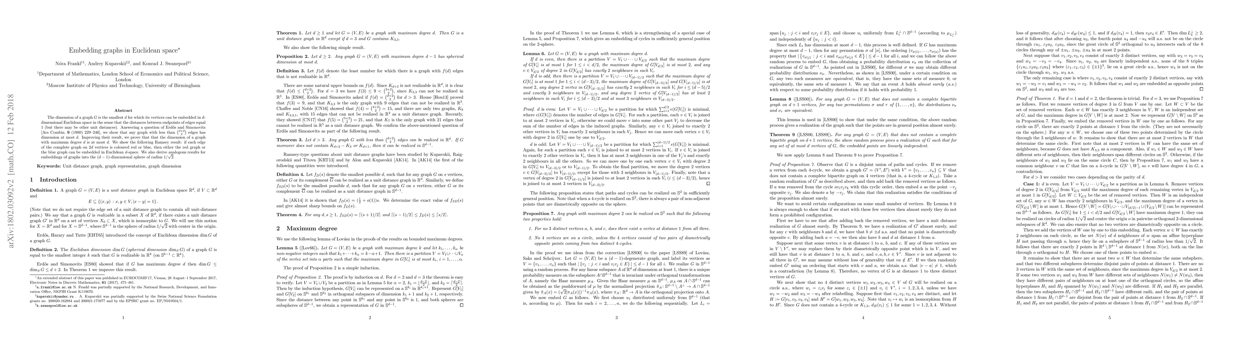 This paper proves that graphs with fewer edges than a certain threshold can be embedded in d-dimensional space, and also shows that the dimension of a graph is at most its maximum degree.
