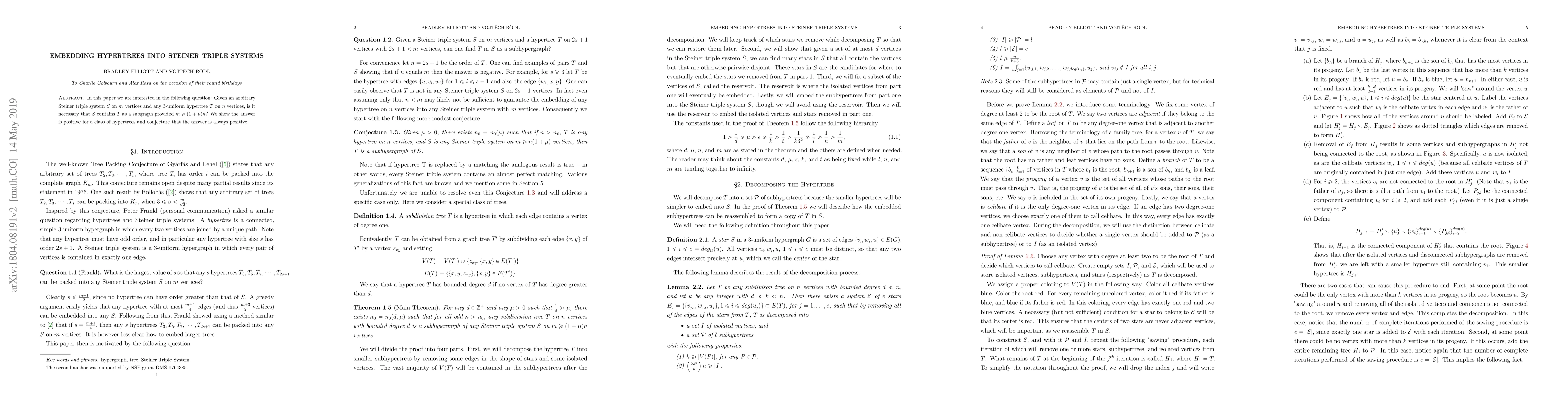 Researchers investigated whether Steiner triple systems on m vertices always contain a specific 3-uniform hypertree as a subgraph when the system has at least (1+ε)n vertices. They found that the answer is positive for certain types of hypertrees and conjecture it's true for all cases.