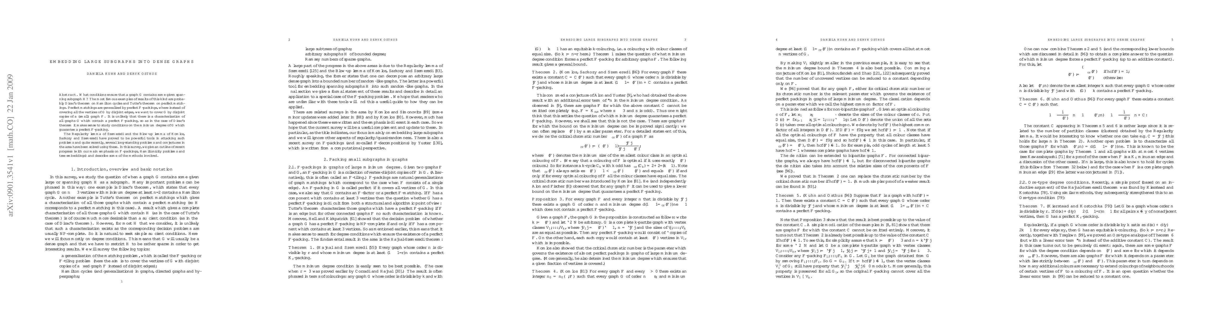 What conditions ensure that a graph G contains some given spanning subgraph H? The most famous examples of results of this kind are probably Dirac's theorem on Hamilton cycles and Tutte's theorem on perfect matchings. Perfect matchings are generalized by perfect F-packings, where instead of covering all the vertices of G by disjoint edges, we want to cover G by disjoint copies of a (small) graph F. It is unlikely that there is a characterization of all graphs G which contain a perfect F-packing, so as in the case of Dirac's theorem it makes sense to study conditions on the minimum degree of G which guarantee a perfect F-packing. The Regularity lemma of Szemeredi and the Blow-up lemma of Komlos, Sarkozy and Szemeredi have proved to be powerful tools in attacking such problems and quite recently, several long-standing problems and conjectures in the area have been solved using these. In this survey, we give an outline of recent progress (with our main emphasis on F-packings, Hamiltonicity problems and tree embeddings) and describe some of the methods involved.