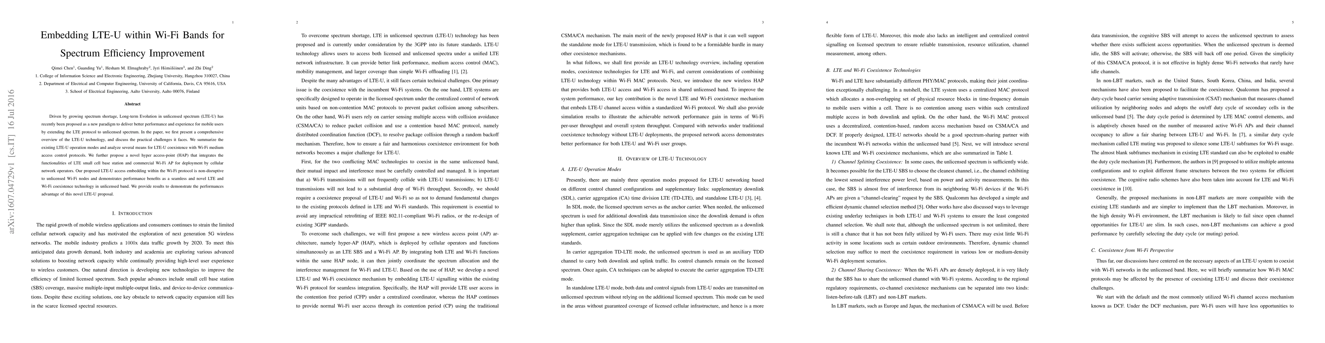 This paper explores embedding LTE-U within Wi-Fi bands to enhance spectrum efficiency, presenting a novel hyper access-point (HAP) that integrates LTE and Wi-Fi functionalities. The proposed solution demonstrates non-disruptive coexistence and performance benefits for LTE-U and Wi-Fi in unlicensed spectrum.