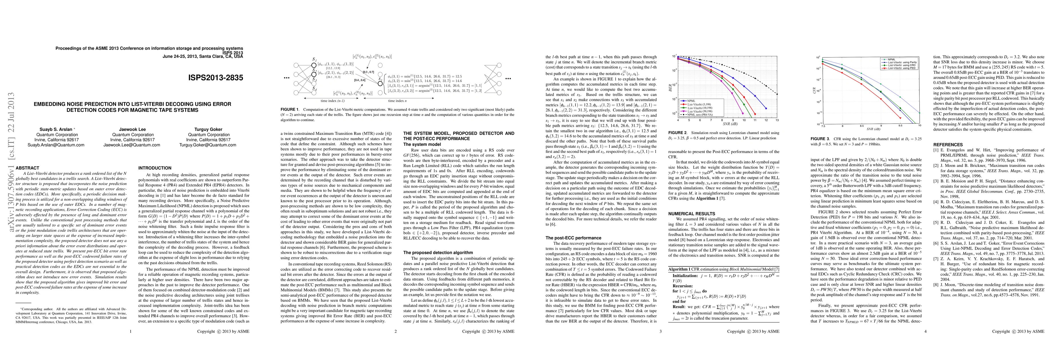A List Viterbi detector produces a rank ordered list of the N globally best candidates in a trellis search. A List Viterbi detector structure is proposed that incorporates the noise prediction with periodic state-metric updates based on outer error detection codes (EDCs). More specifically, a periodic decision making process is utilized for a non-overlapping sliding windows of P bits based on the use of outer EDCs. In a number of magnetic recording applications, Error Correction Coding (ECC) is adversely effected by the presence of long and dominant error events. Unlike the conventional post processing methods that are usually tailored to a specific set of dominant error events or the joint modulation code trellis architectures that are operating on larger state spaces at the expense of increased implementation complexity, the proposed detector does not use any a priori information about the error event distributions and operates at reduced state trellis. We present pre ECC bit error rate performance as well as the post ECC codeword failure rates of the proposed detector using perfect detection scenario as well as practical detection codes as the EDCs are not essential to the overall design. Furthermore, it is observed that proposed algorithm does not introduce new error events. Simulation results show that the proposed algorithm gives improved bit error and post ECC codeword failure rates at the expense of some increase in complexity.