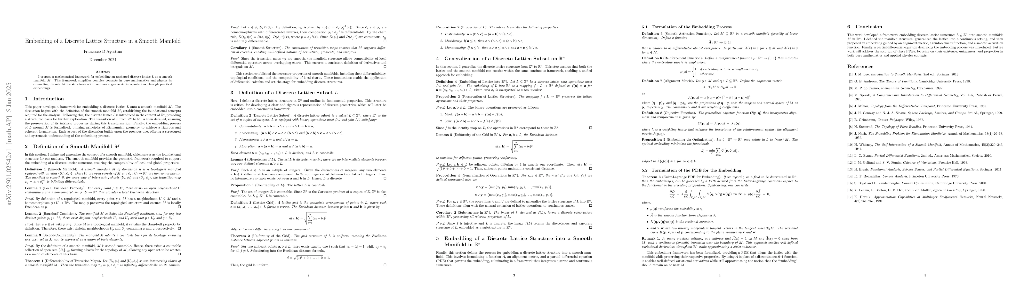 I propose a mathematical framework for embedding an unshaped discrete lattice $L$ on a smooth manifold $M$. This framework simplifies complex concepts in pure mathematics and physics by connecting discrete lattice structures with continuous geometric interpretations through practical embeddings.