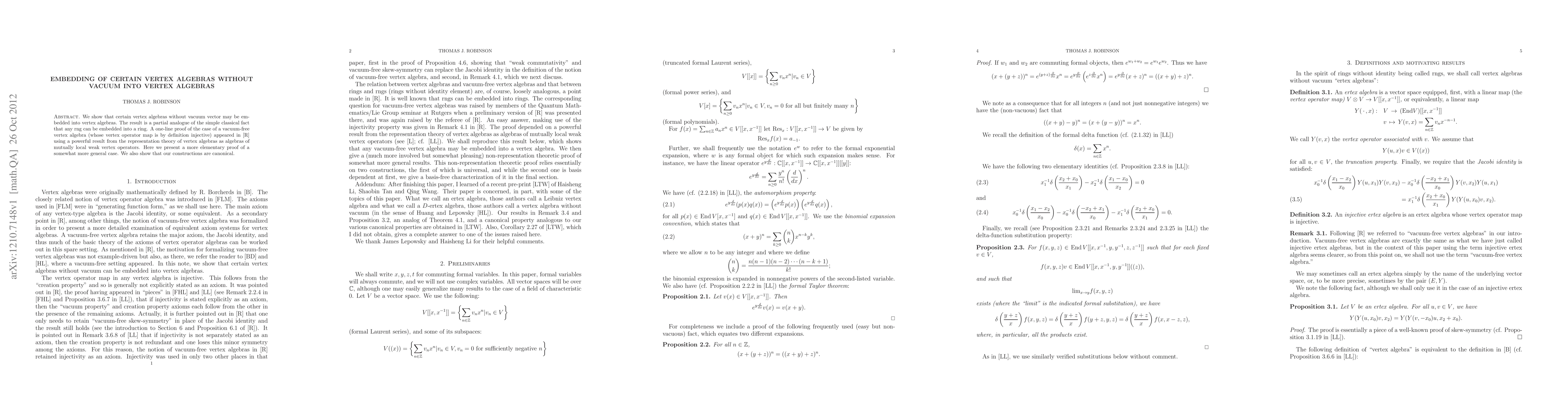 Researchers have successfully embedded certain vertex algebras without vacuum vectors into vertex algebras, extending a classical fact to the realm of vertex algebras.