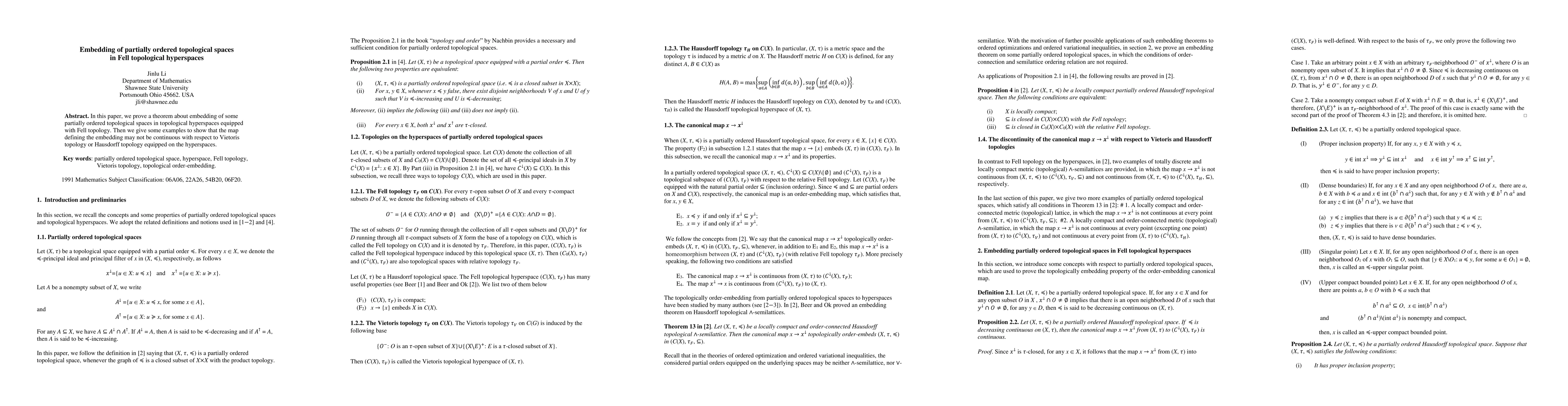 Summary: This paper proves the embedding of specific partially ordered topological spaces into Fell topological hyperspaces, while also demonstrating instances where the embedding map lacks continuity under Vietoris or Hausdorff topologies.