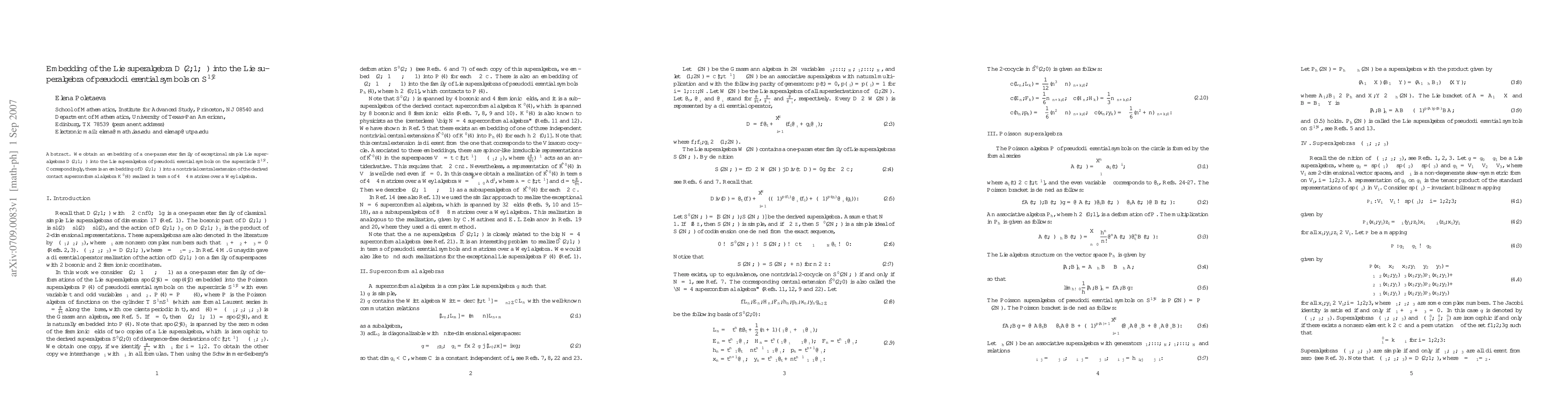 We obtain an embedding of a one-parameter family of exceptional simple Lie superalgebras $D(2, 1 ; \alpha)$ into the Lie superalgebra of pseudodifferential symbols on the supercircle $S^{1|2}$. Correspondingly, there is an embedding of $D(2, 1 ; \alpha)$ into a nontrivial central extension of the derived contact superconformal algebra $K'(4)$ realized in terms of $4\times 4$ matrices over a Weyl algebra.