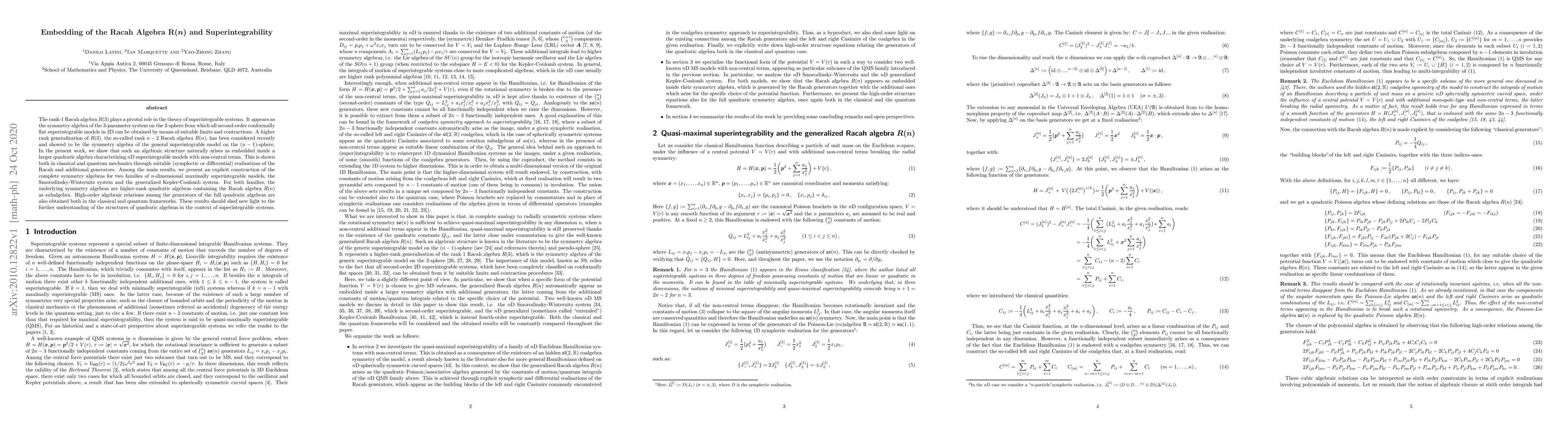 This paper explores the embedding of the higher-rank Racah algebra $R(n)$ within larger quadratic algebras that characterize $n$-dimensional superintegrable systems. It demonstrates the presence of $R(n)$ as a subalgebra in the symmetry algebras of two families of maximally superintegrable models, revealing high-order algebraic relations among their generators.