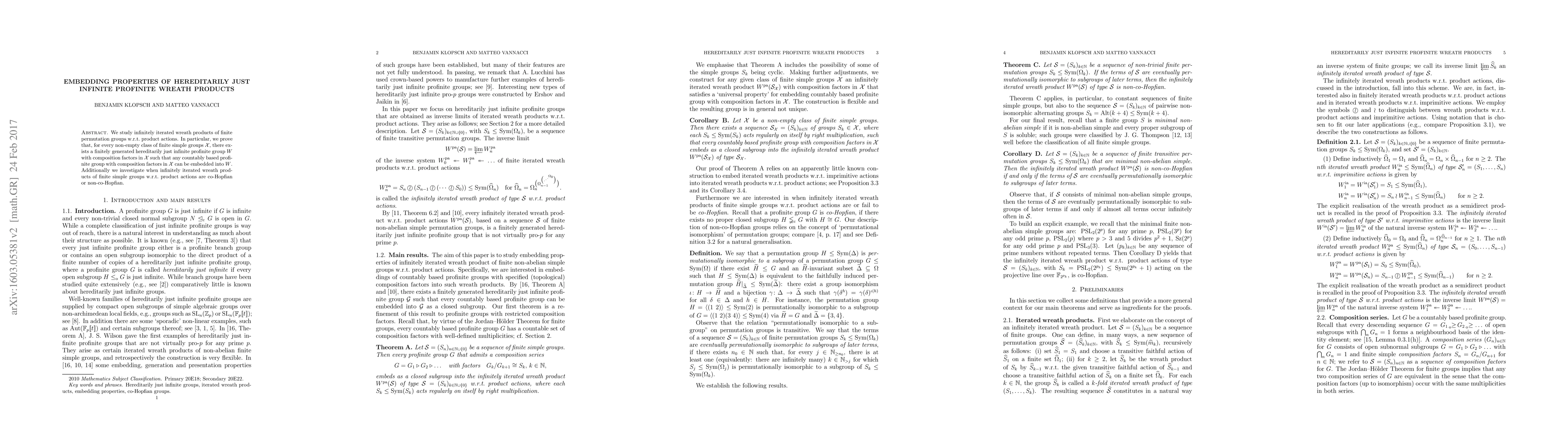 This paper explores the embedding properties of hereditarily just infinite profinite wreath products derived from finite simple groups. It proves that any countably based profinite group with composition factors from a given non-empty class can be embedded into a specific finitely generated hereditarily just infinite profinite group, and investigates the co-Hopfian nature of these products.