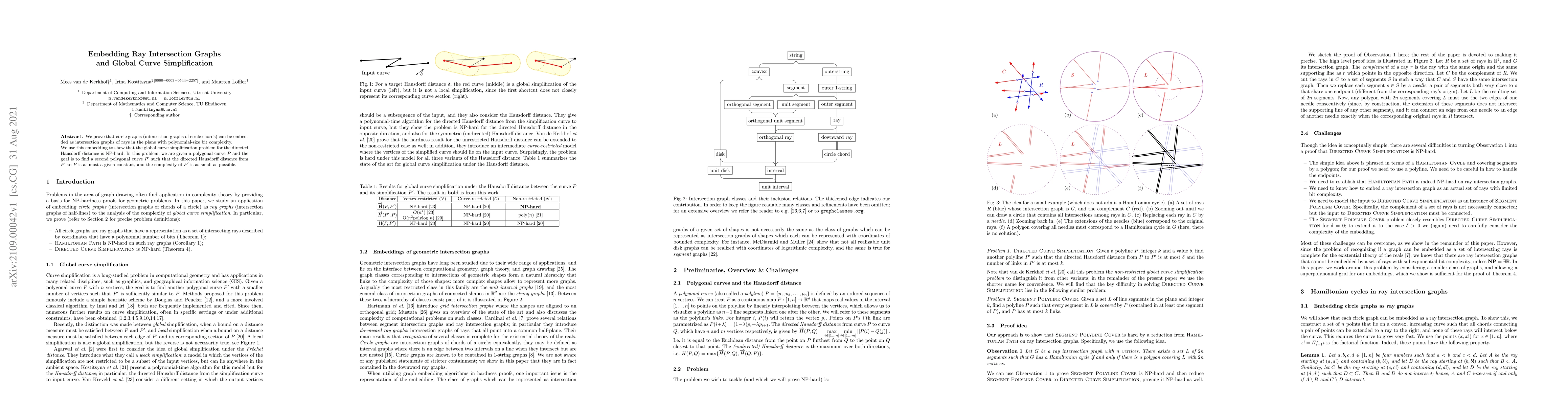 This paper demonstrates that circle graphs can be embedded as ray intersection graphs with polynomial-size bit complexity. It also proves the NP-hardness of the global curve simplification problem for the directed Hausdorff distance.