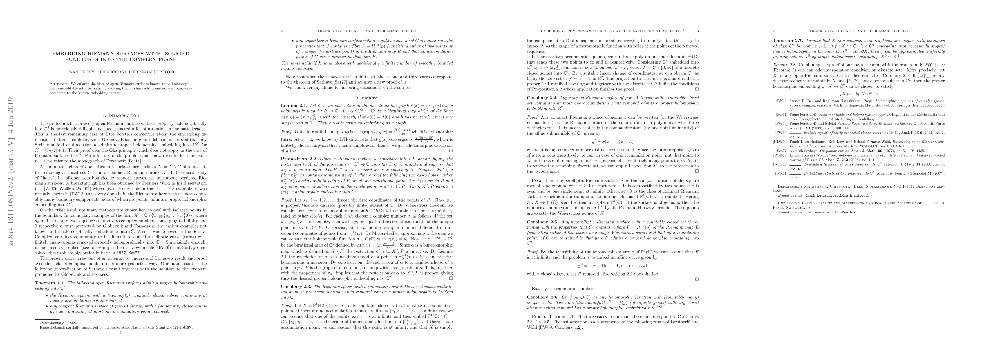 The paper introduces new embedding techniques using birational maps and Weierstrass's theorem to handle isolated punctures on Riemann surfaces, generalizing previous embedding results.