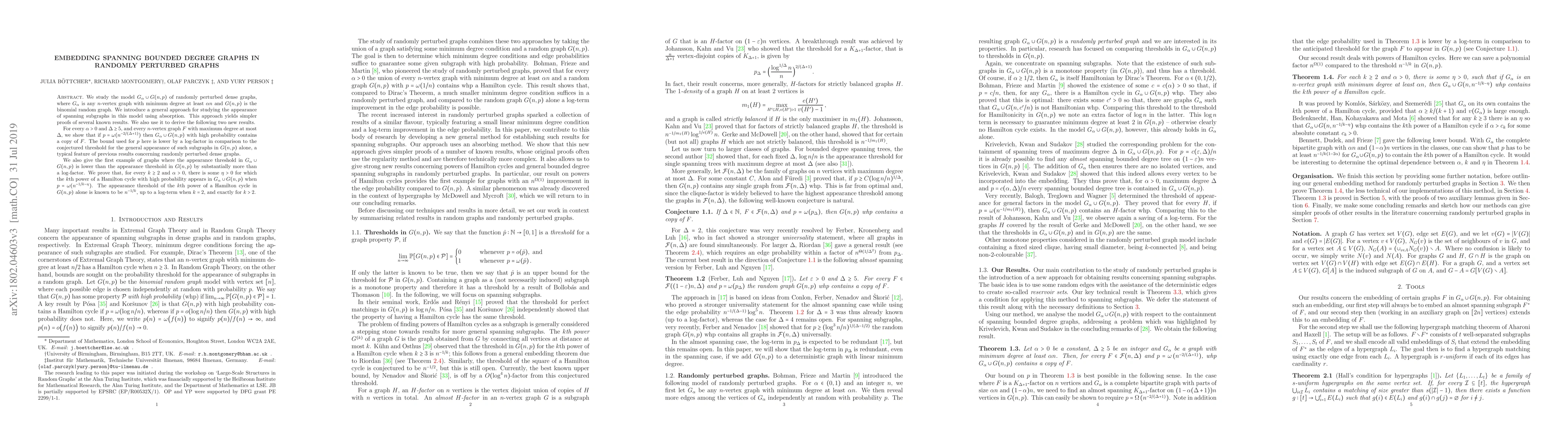 This paper explores the embedding of spanning bounded degree graphs in randomly perturbed dense graphs, demonstrating that the appearance threshold for certain subgraphs in the perturbed model $G_\alpha \cup G(n,p)$ is lower than in the standard random graph $G(n,p)$ by a significant margin. It provides new results showing that for specific $n$-vertex graphs $F$ and Hamilton cycles, the perturbed model can contain these subgraphs at lower probabilities than the standard model.