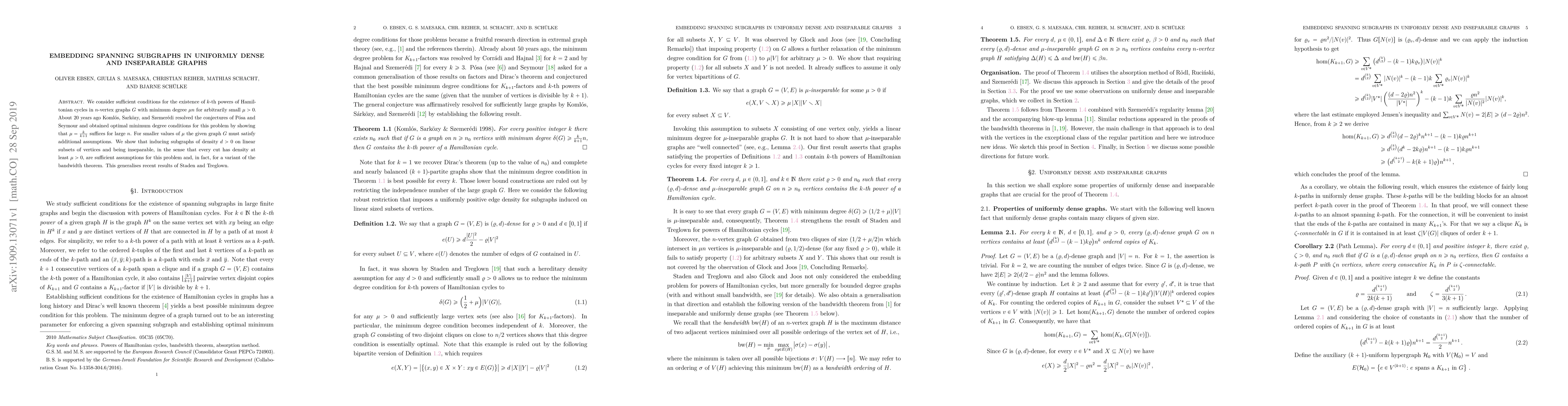 We consider sufficient conditions for the existence of $k$-th powers of Hamiltonian cycles in $n$-vertex graphs $G$ with minimum degree $\mu n$ for arbitrarily small $\mu>0$. About 20 years ago Koml\'os, Sark\"ozy, and Szemer\'edi resolved the conjectures of P\'osa and Seymour and obtained optimal minimum degree conditions for this problem by showing that $\mu=\frac{k}{k+1}$ suffices for large $n$. For smaller values of $\mu$ the given graph $G$ must satisfy additional assumptions. We show that inducing subgraphs of density $d>0$ on linear subsets of vertices and being inseparable, in the sense that every cut has density at least $\mu>0$, are sufficient assumptions for this problem and, in fact, for a variant of the bandwidth theorem. This generalises recent results of Staden and Treglown.