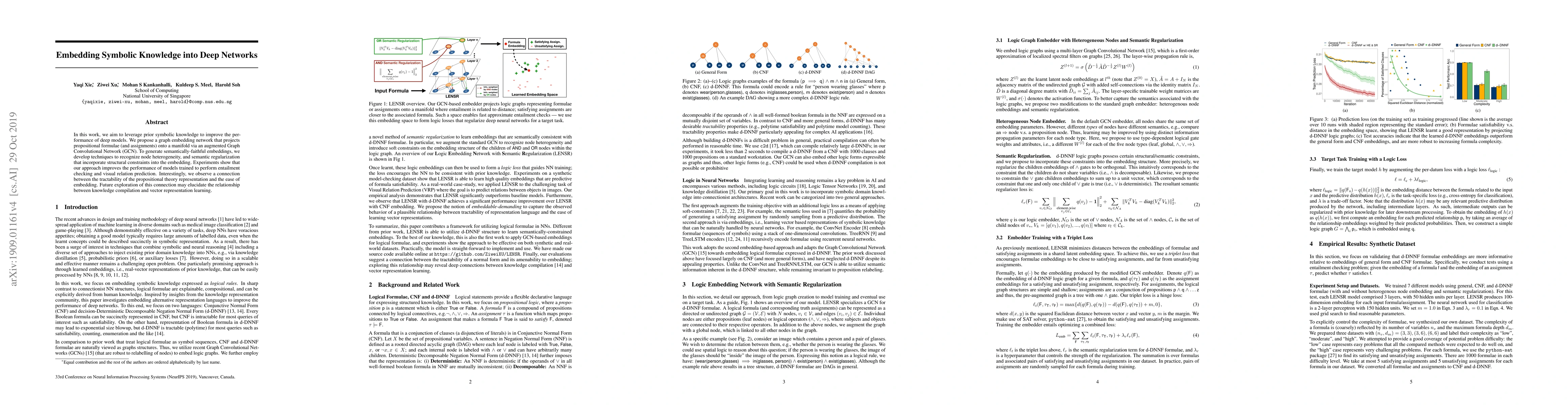 This paper proposes a graph embedding network that leverages symbolic knowledge to enhance deep learning models, using an augmented Graph Convolutional Network for semantically-faithful embeddings. The approach improves entailment checking and visual relation prediction, revealing a potential link between propositional theory tractability and embedding ease.