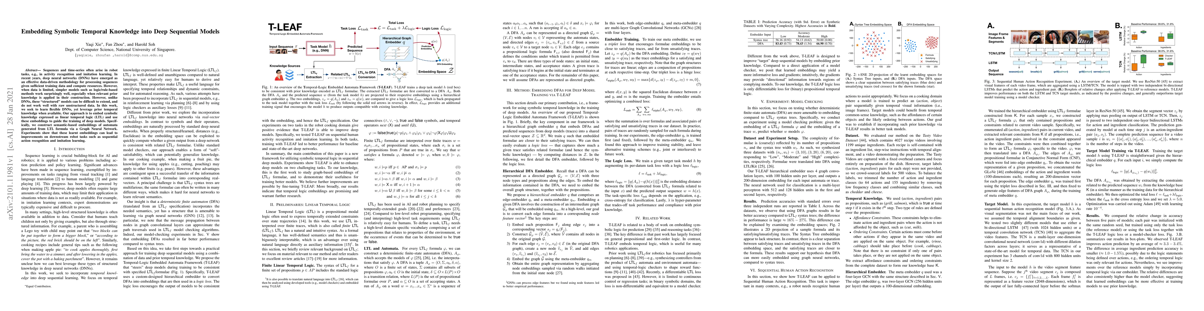 Sequences and time-series often arise in robot tasks, e.g., in activity recognition and imitation learning. In recent years, deep neural networks (DNNs) have emerged as an effective data-driven methodology for processing sequences given sufficient training data and compute resources. However, when data is limited, simpler models such as logic/rule-based methods work surprisingly well, especially when relevant prior knowledge is applied in their construction. However, unlike DNNs, these "structured" models can be difficult to extend, and do not work well with raw unstructured data. In this work, we seek to learn flexible DNNs, yet leverage prior temporal knowledge when available. Our approach is to embed symbolic knowledge expressed as linear temporal logic (LTL) and use these embeddings to guide the training of deep models. Specifically, we construct semantic-based embeddings of automata generated from LTL formula via a Graph Neural Network. Experiments show that these learnt embeddings can lead to improvements in downstream robot tasks such as sequential action recognition and imitation learning.