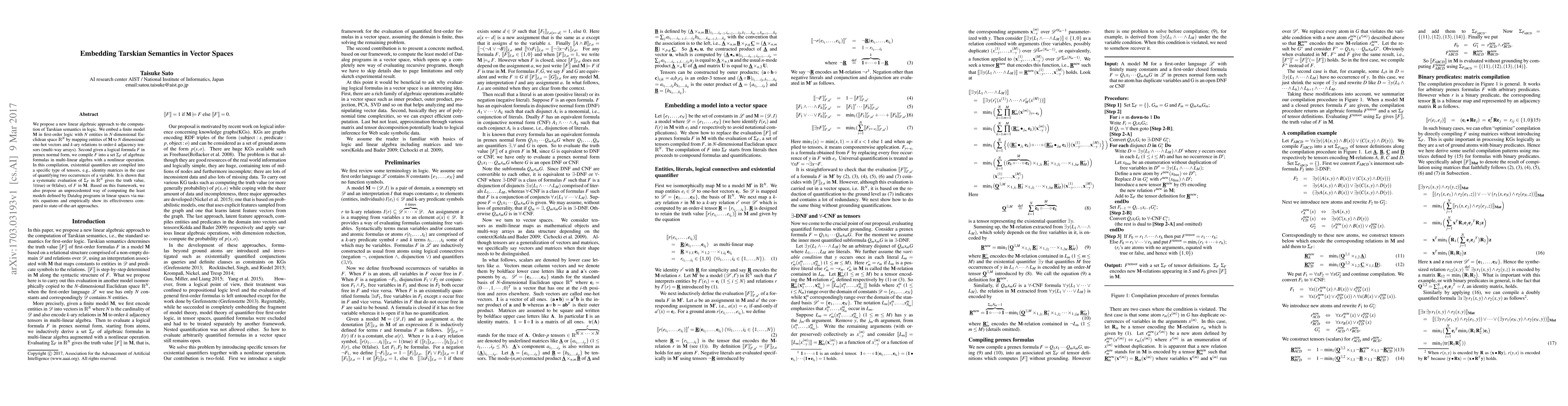 Researchers propose a new method to compute Tarskian semantics in logic using linear algebraic approaches, mapping entities to vectors and relations to tensors, enabling efficient evaluation of logical formulas.