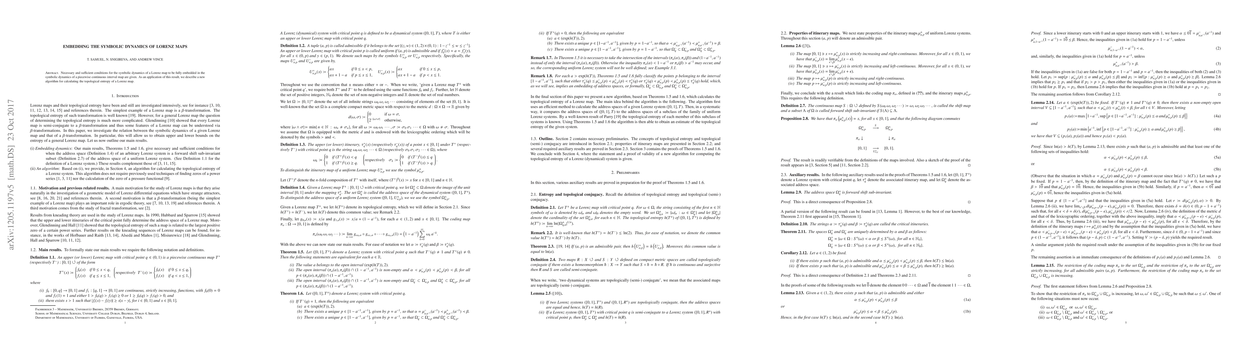 This paper provides necessary and sufficient conditions for embedding the symbolic dynamics of a Lorenz map into a piecewise continuous interval map, and introduces a new algorithm for calculating the topological entropy of Lorenz maps.