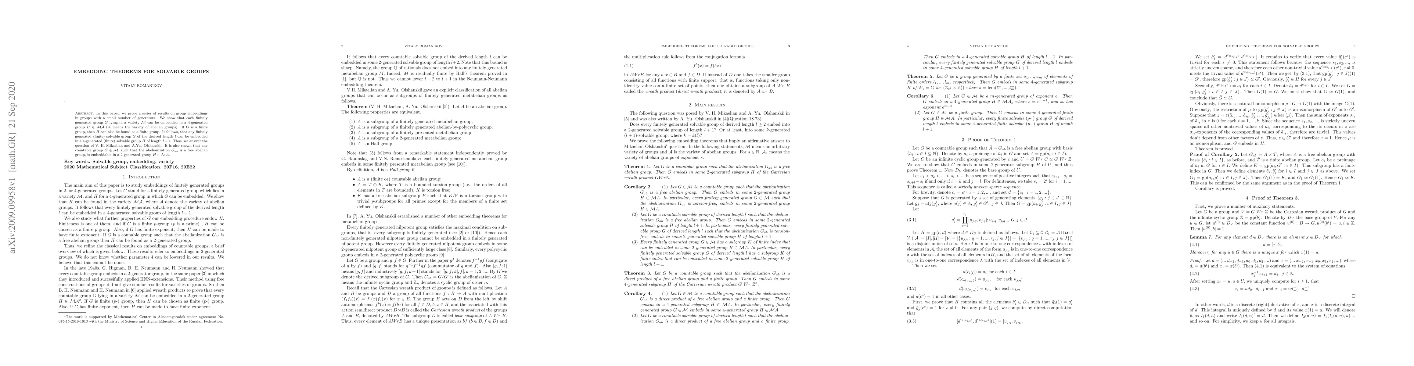 Researchers prove that any finitely generated solvable group can be embedded in a 4-generated solvable group of one derived length higher, offering insight into group embeddings and connections to Mikaelian-Olshanskii's question.