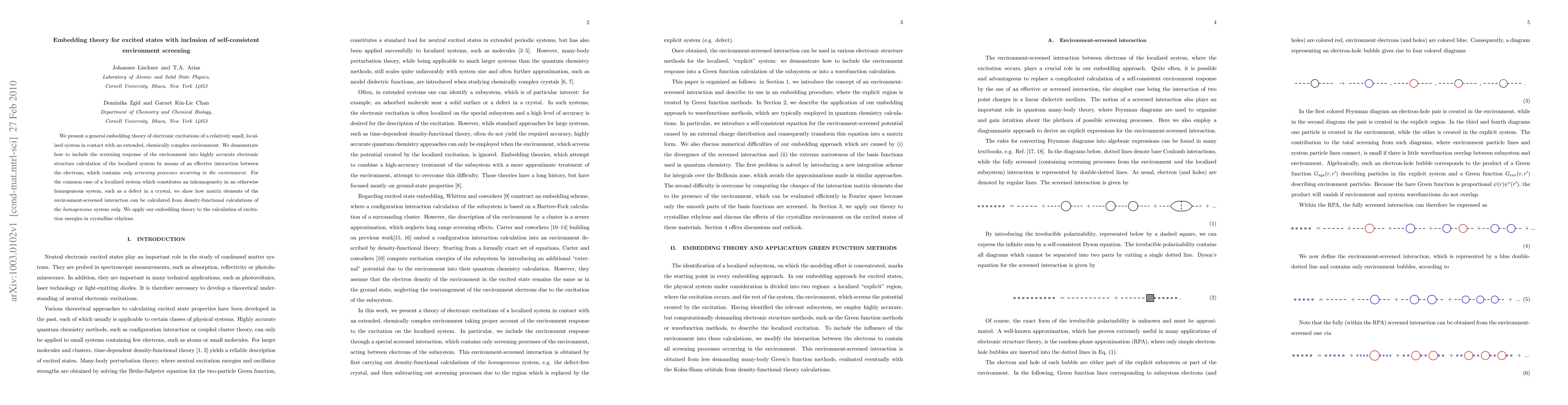 A new approach was developed for embedding excited states in physical systems, which incorporates the self-consistent screening response of the environment