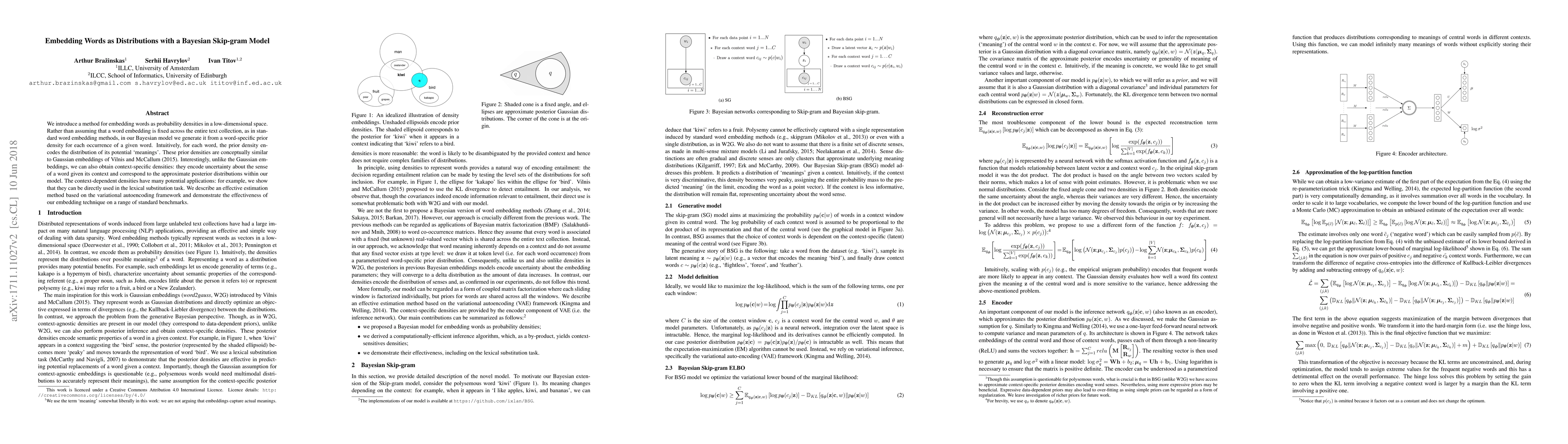 Researchers introduce a Bayesian model that embeds words as probability densities in a low-dimensional space, allowing for context-specific uncertainty about word meanings. Their approach achieves competitive results on standard benchmarks.