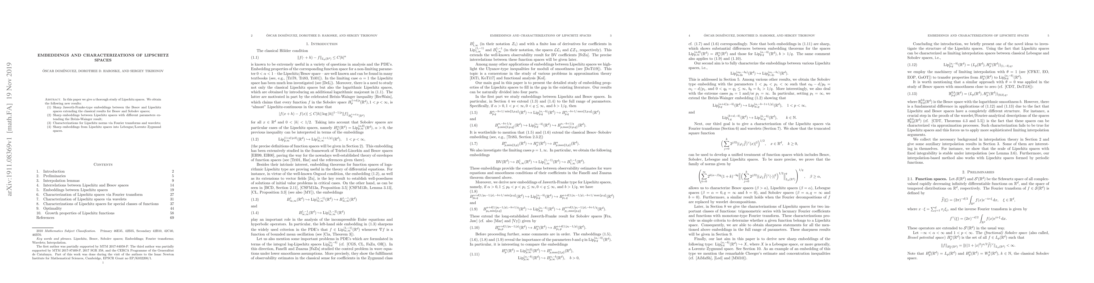 In this paper we give a thorough study of Lipschitz spaces. We obtain the following new results: (1) Sharp Jawerth-Franke-type embeddings between the Besov and Lipschitz spaces extending the classical results for Besov and Sobolev spaces; (2) Sharp embeddings between Lipschitz spaces with different parameters extending the Br\'ezis-Wainger result; (3) Characterizations for Lipschitz spaces norms via Fourier transforms and wavelets; (4) Sharp embeddings from Lipschitz spaces into Lebesgue/Lorentz-Zygmund spaces.