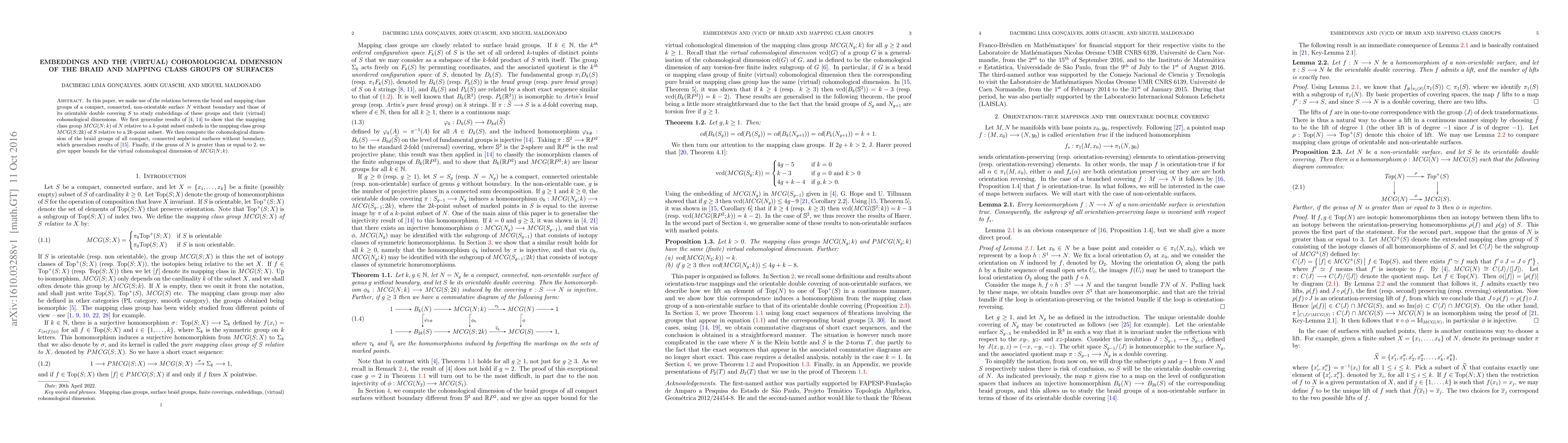 This paper explores embeddings of braid and mapping class groups of non-orientable surfaces into their orientable double covers, showing that the mapping class group of the non-orientable surface embeds in the orientable counterpart relative to doubled point sets. It computes the cohomological dimensions of braid groups for all compact, connected aspherical surfaces without boundary and provides upper bounds for the virtual cohomological dimension of mapping class groups for surfaces of genus ≥ 2.