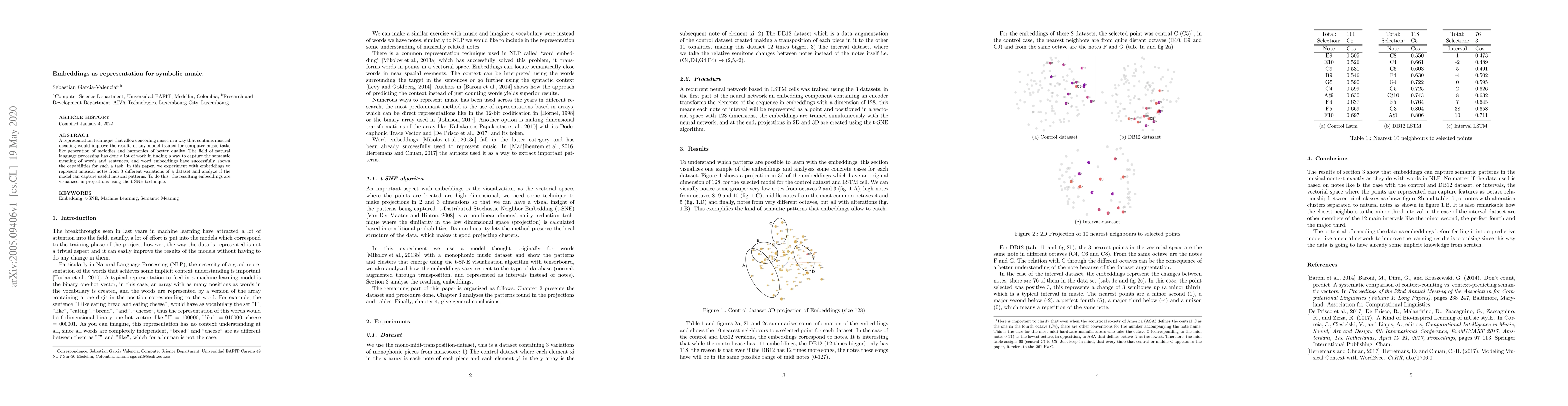 Researchers developed a method to represent musical notes as embeddings, which can capture useful musical patterns and improve computer music tasks like melody generation. Visualizations of these embeddings revealed meaningful relationships between notes in different variations of a dataset.