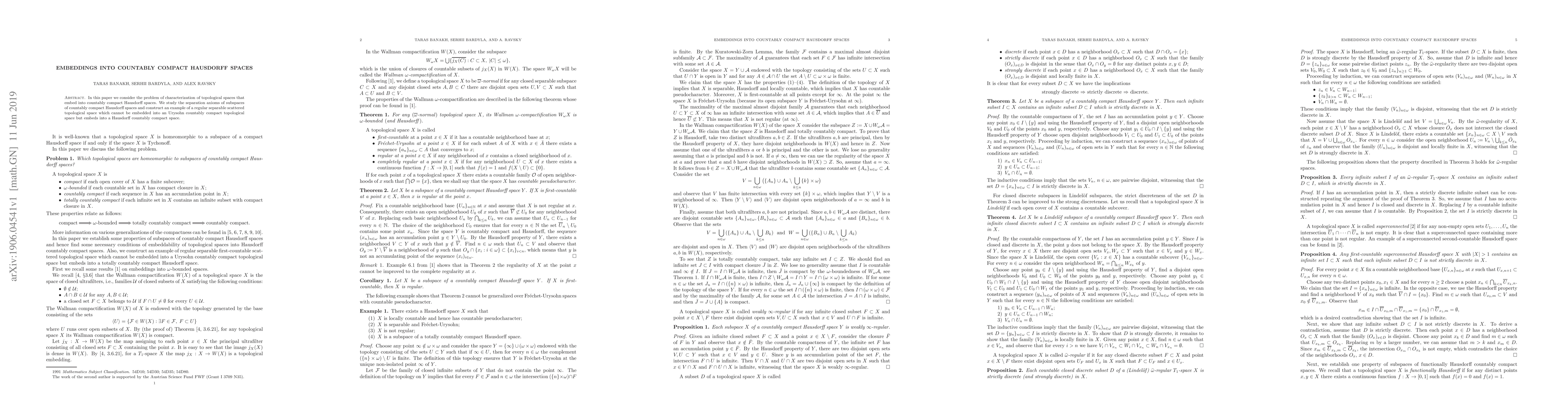 This paper characterizes topological spaces that can be embedded into countably compact Hausdorff spaces, exploring separation axioms in subspaces. It constructs an example of a regular separable scattered space that embeds into a Hausdorff countably compact space but not into a Urysohn countably compact space.