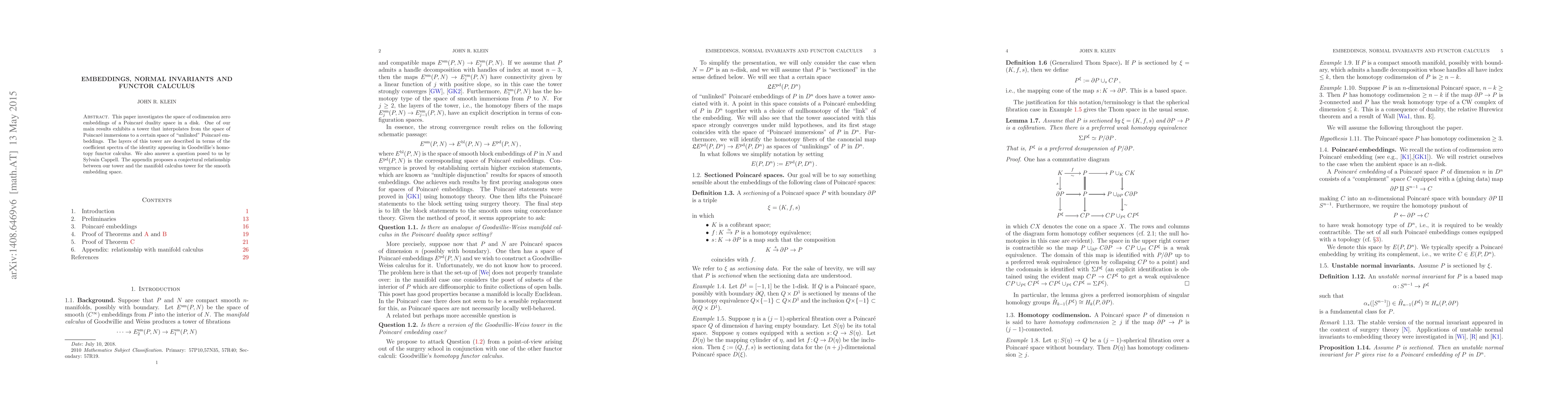 This paper investigates the space of codimension zero embeddings of a Poincare duality space in a disk. One of our main results exhibits a tower that interpolates from the space of Poincare immersions to a certain space of "unlinked" Poincare embeddings. The layers of this tower are described in terms of the coefficient spectra of the identity appearing in Goodwillie's homotopy functor calculus. We also answer a question posed to us by Sylvain Cappell. The appendix proposes a conjectural relationship between our tower and the manifold calculus tower for the smooth embedding space.