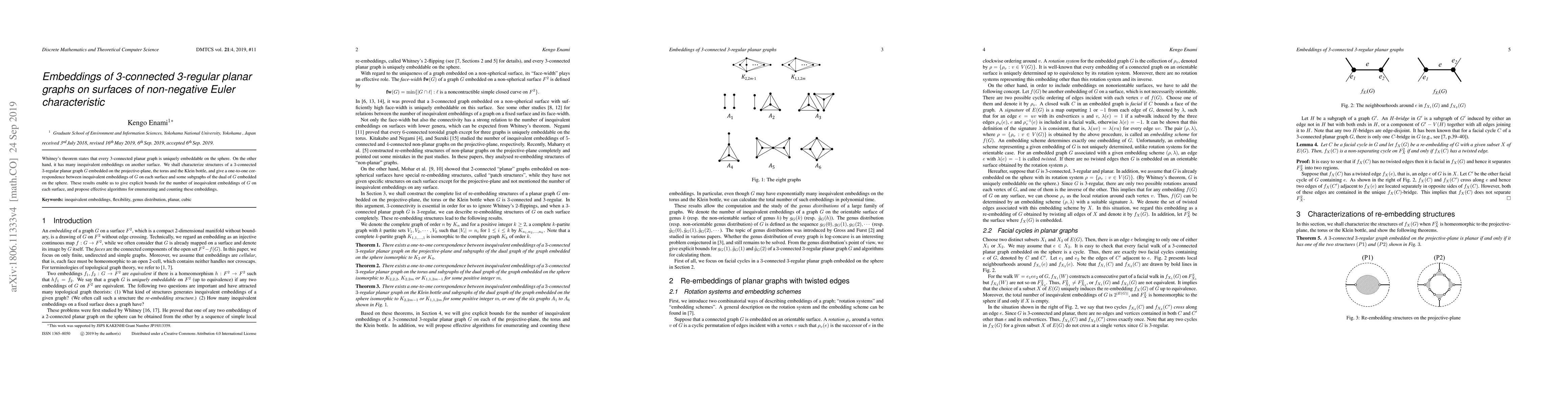 This paper characterizes the embeddings of 3-connected 3-regular planar graphs on the projective plane, torus, and Klein bottle, correlating inequivalent embeddings with subgraphs of the graph's dual on the sphere. It provides explicit bounds and algorithms for enumerating these embeddings.