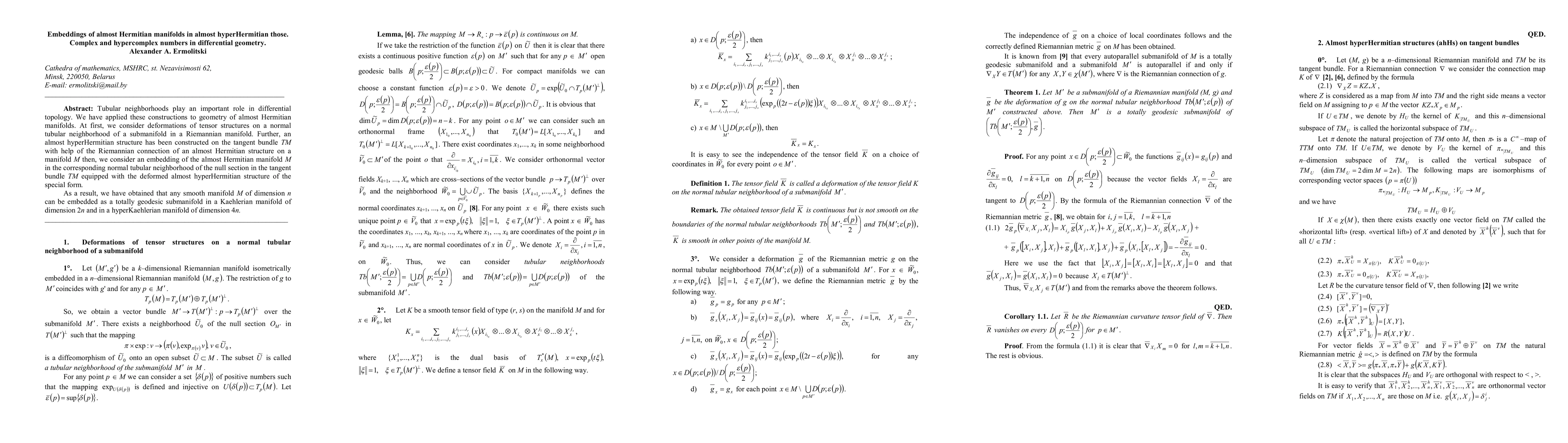 Tubular neighborhoods play an important role in differential topology. We have applied these constructions to geometry of almost Hermitian manifolds. At first, we consider deformations of tensor structures on a normal tubular neighborhood of a submanifold in a Riemannian manifold.Further, an almost hyperHermitian structure has been constructed on the tangent bundle TM with help of the Riemannian connection of an almost Hermitian structure on a manifold M then, we consider an embedding of the almost Hermitian manifold M in the corresponding normal tubular neighborhood of the null section in the tangent bundle TM equipped with the deformed almost hyperHermitian structure of the special form. As a result,we have obtained that any smooth manifold M of dimension n can be embedded as a totally geodesic submanifold in a Kaehlerian manifold of dimension 2n and in a hyperKaehlerian manifold of dimension 4n.
