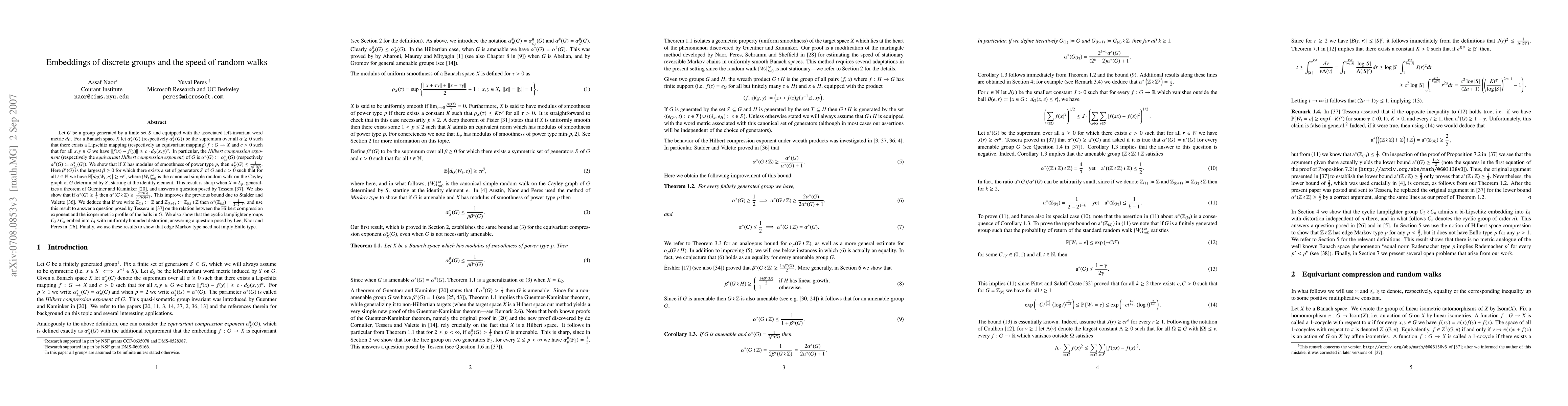 For a finitely generated group G and a banach space X let \alpha^*_X(G) (respectively \alpha^#_X(G)) be the supremum over all \alpha\ge 0 such that there exists a Lipschitz mapping (respectively an equivariant mapping) f:G\to X and c>0 such that for all x,y\in G we have \|f(x)-f(y)\|\ge c\cdot d_G(x,y)^\alpha. In particular, the Hilbert compression exponent (respectively the equivariant Hilbert compression exponent) of G is \alpha^*(G)=\alpha^*_{L_2}(G) (respectively \alpha^#(G)= \alpha_{L_2}^#(G)). We show that if X has modulus of smoothness of power type p, then \alpha^#_X(G)\le \frac{1}{p\beta^*(G)}. Here \beta^*(G) is the largest \beta\ge 0 for which there exists a set of generators S of G and c>0 such that for all t\in \N we have \E\big[d_G(W_t,e)\big]\ge ct^\beta, where \{W_t\}_{t=0}^\infty is the canonical simple random walk on the Cayley graph of G determined by S, starting at the identity element. This result is sharp when X=L_p, generalizes a theorem of Guentner and Kaminker and answers a question posed by Tessera. We also show that if \alpha^*(G)\ge 1/2 then \alpha^*(G\bwr \Z)\ge \frac{2\alpha^*(G)}{2\alpha^*(G)+1}. This improves the previous bound due to Stalder and ValetteWe deduce that if we write \Z_{(1)}= \Z and \Z_{(k+1)}\coloneqq \Z_{(k)}\bwr \Z then \alpha^*(\Z_{(k)})=\frac{1}{2-2^{1-k}}, and use this result to answer a question posed by Tessera in on the relation between the Hilbert compression exponent and the isoperimetric profile of the balls in G. We also show that the cyclic lamplighter groups C_2\bwr C_n embed into L_1 with uniformly bounded distortion, answering a question posed by Lee, Naor and Peres. Finally, we use these results to show that edge Markov type need not imply Enflo type.