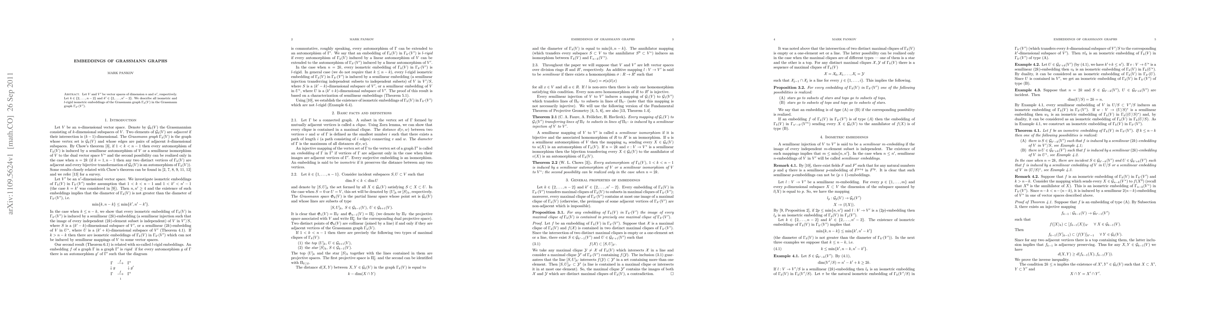 This paper investigates the isometric and $l$-rigid isometric embeddings of Grassmann graphs $\Gamma_{k}(V)$ into $\Gamma_{k'}(V')$, where $V$ and $V'$ are vector spaces of dimensions $n$ and $n'$, respectively, and $k$ and $k'$ are integers within specified ranges. The study identifies all possible embeddings under these conditions.