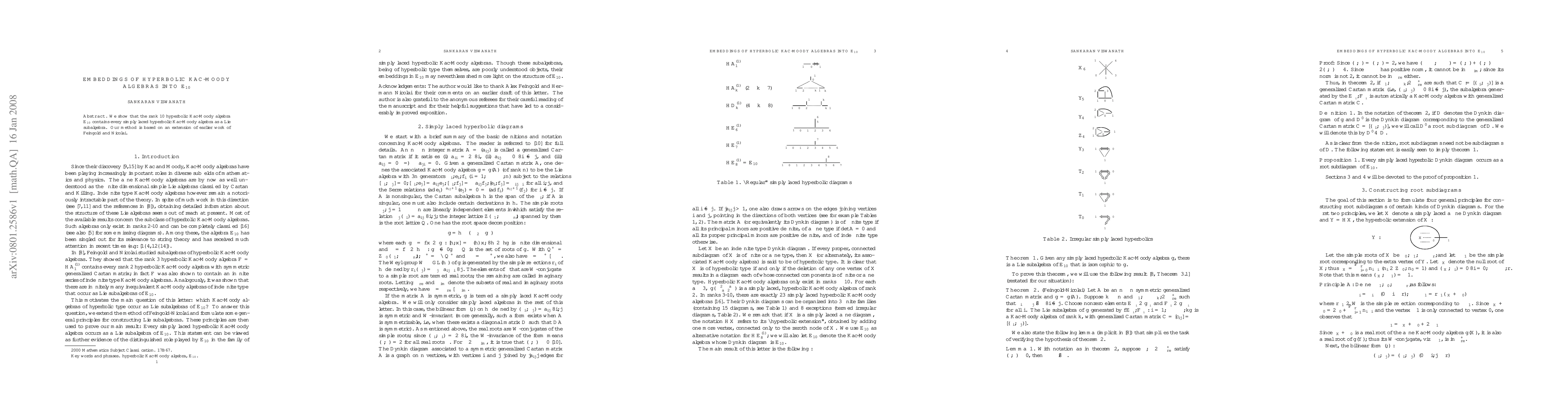 The paper demonstrates that the rank 10 hyperbolic Kac-Moody algebra $E_{10}$ can embed every simply laced hyperbolic Kac-Moody algebra as a Lie subalgebra, utilizing an extension of Feingold and Nicolai's previous research.