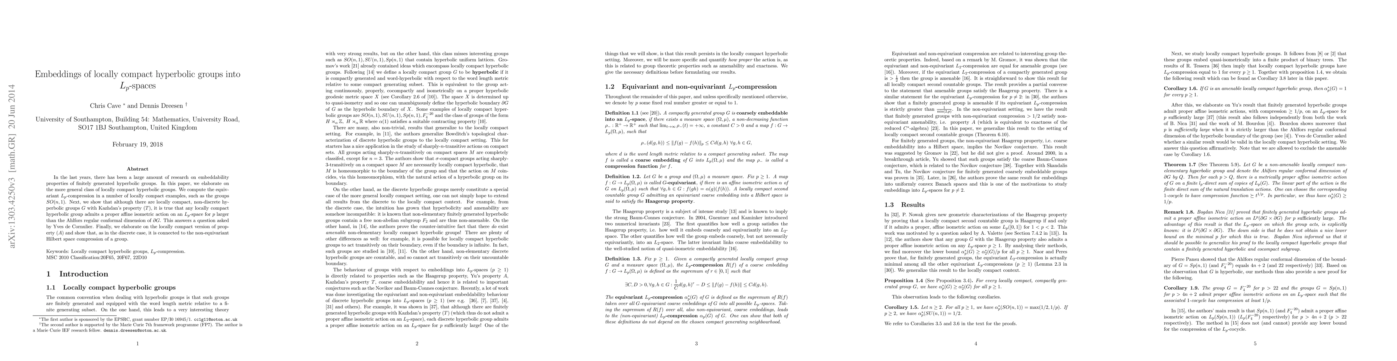 This paper explores the embeddability properties of locally compact hyperbolic groups, focusing on their equivariant $L_p$-compression and proper affine isometric actions. It finds that the minimal equivariant $L_p$-compression is $p=2$ for groups like $SO(n,1)$, and shows that any such group can act properly on an $L_p$-space for $p$ greater than its Ahlfors dimension.