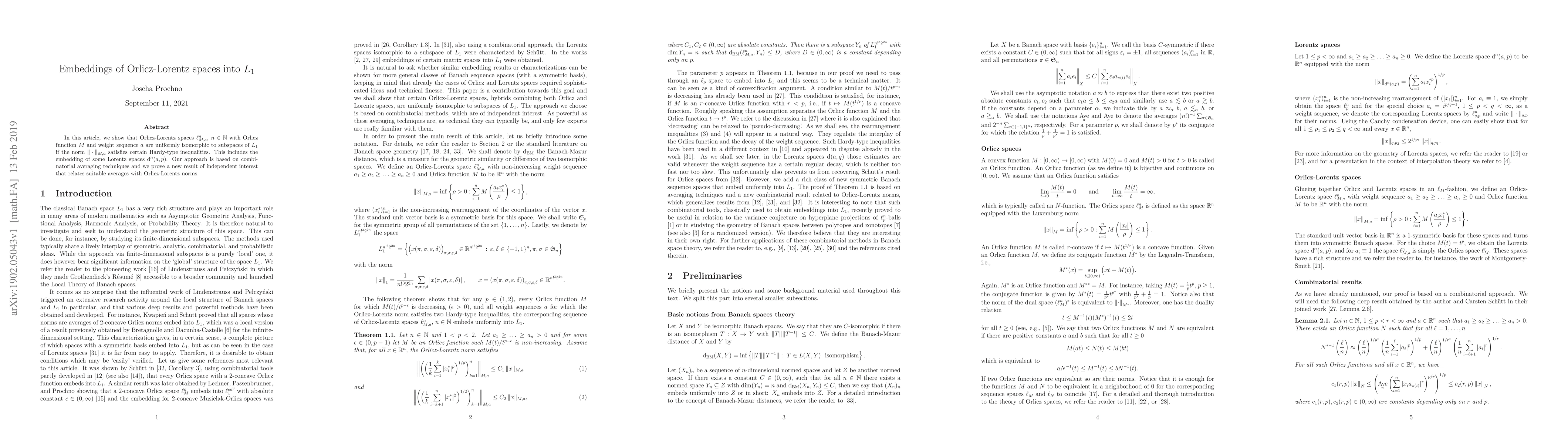 This paper demonstrates that Orlicz-Lorentz spaces $\ell^n_{M,a}$ embed uniformly into $L_1$ under specific Hardy-type inequalities. The authors utilize combinatorial averaging techniques and establish a novel result linking these averages with Orlicz-Lorentz norms.