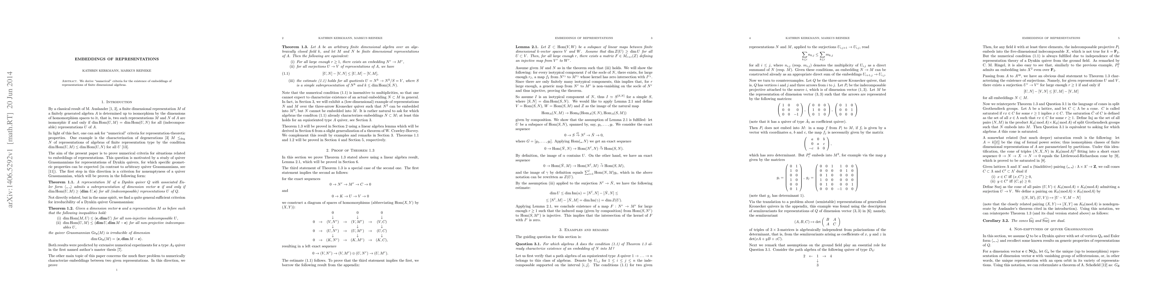 This paper develops criteria for the existence of embeddings between representations of finite-dimensional algebras, enabling a more precise understanding of algebraic structures.