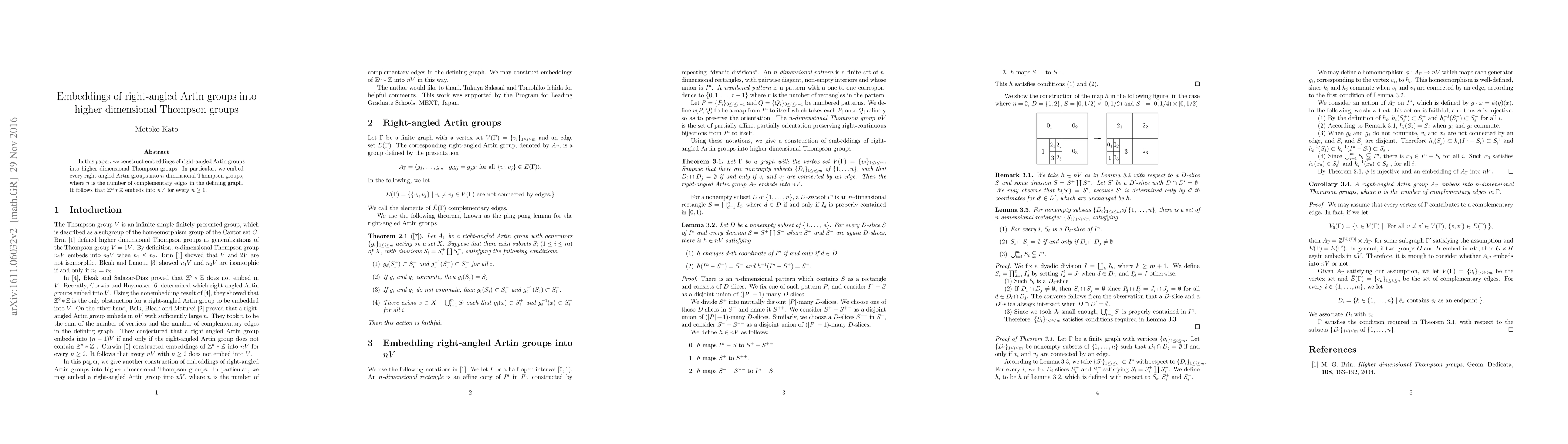 Summary: This paper constructs embeddings of right-angled Artin groups into n-dimensional Thompson groups, where n corresponds to the number of complementary edges in the defining graph of the Artin group. The result provides a novel method for incorporating these algebraic structures into higher-dimensional combinatorial group theory.