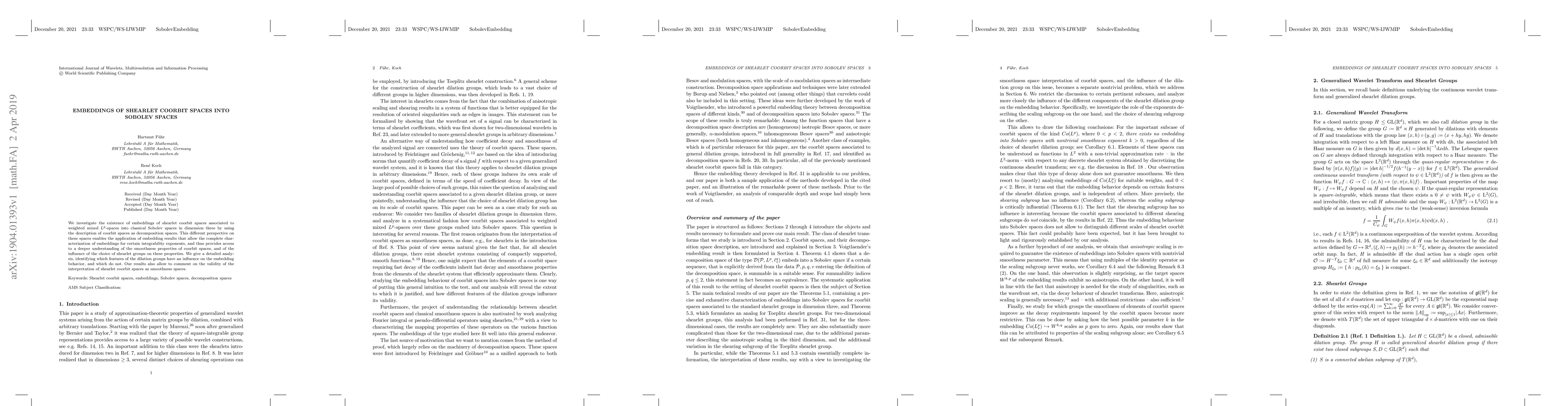 This research paper explores embeddings of shearlet coorbit spaces into classical Sobolev spaces in three dimensions, characterizing these embeddings based on weighted mixed $L^p$-spaces. By viewing coorbit spaces as decomposition spaces, it provides insights into the smoothness properties influenced by the choice of shearlet groups.