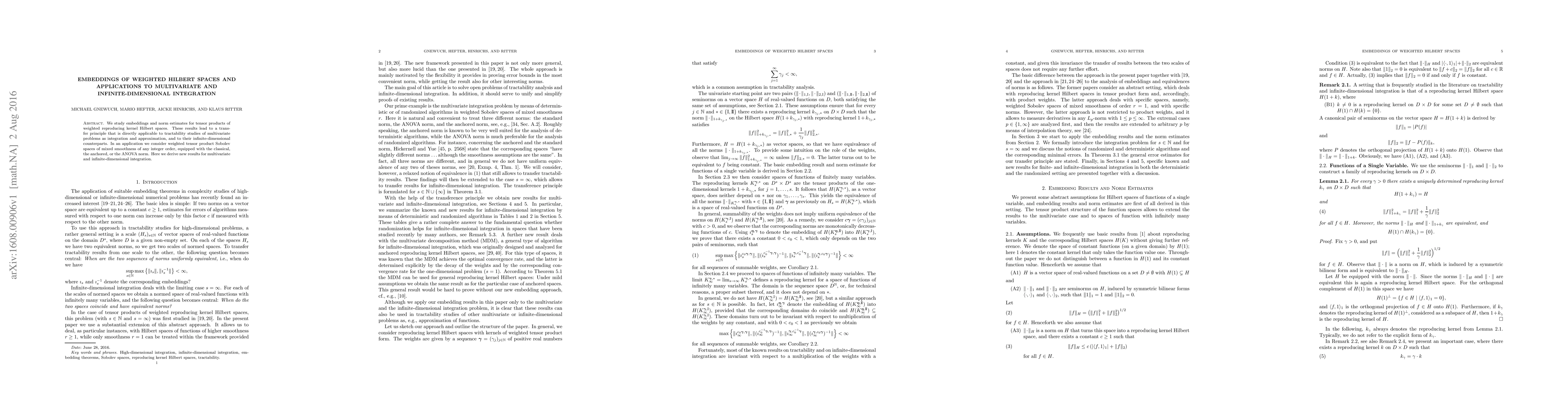 This paper investigates embeddings and norm estimates for tensor products of weighted reproducing kernel Hilbert spaces, leading to a transfer principle for multivariate and infinite-dimensional integration. The study applies these results to weighted tensor product Sobolev spaces, deriving new insights for multivariate and infinite-dimensional integration.
