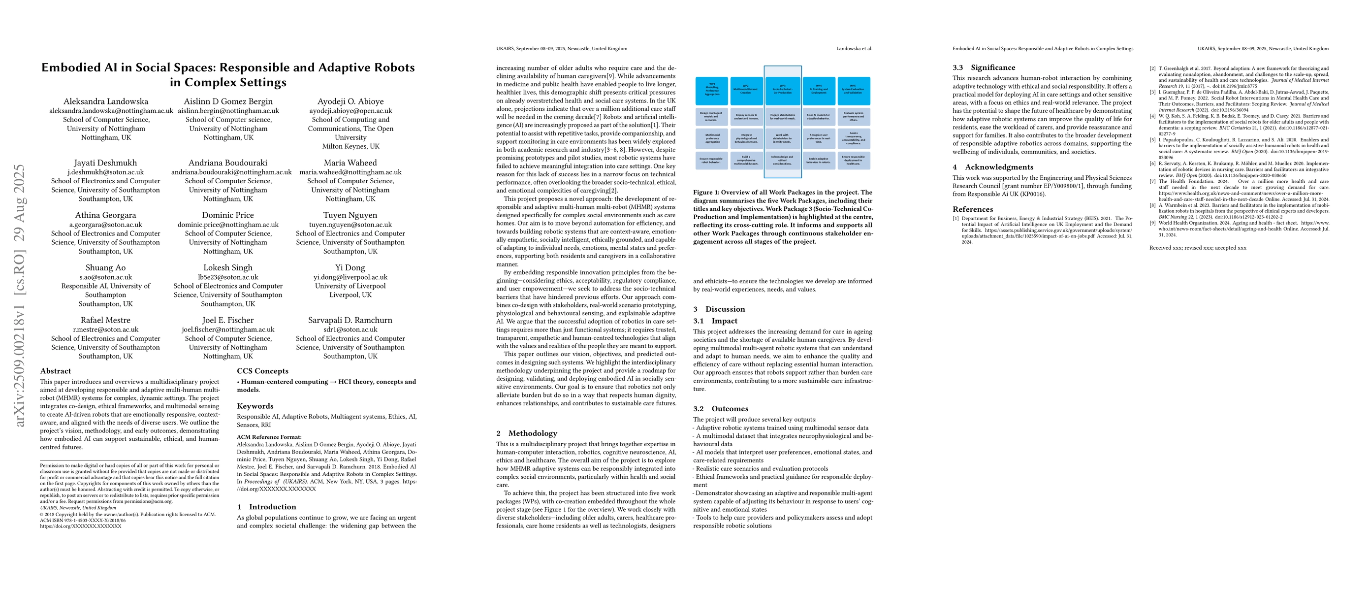 This paper introduces and overviews a multidisciplinary project aimed at developing responsible and adaptive multi-human multi-robot (MHMR) systems for complex, dynamic settings. The project integrates co-design, ethical frameworks, and multimodal sensing to create AI-driven robots that are emotionally responsive, context-aware, and aligned with the needs of diverse users. We outline the project's vision, methodology, and early outcomes, demonstrating how embodied AI can support sustainable, ethical, and human-centred futures.