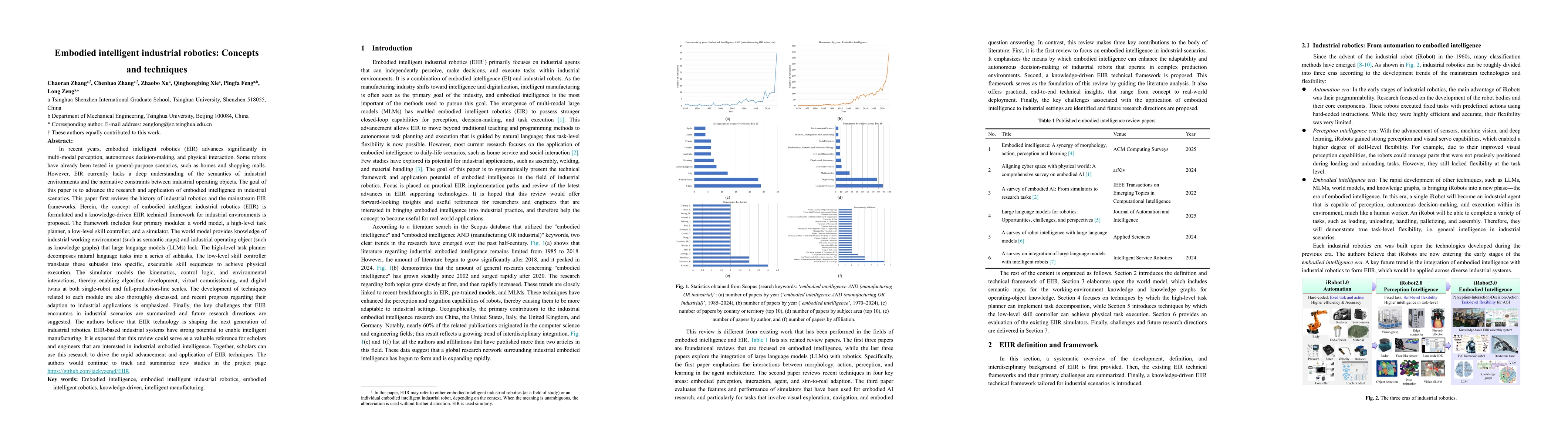 This work differentiates itself by focusing on the application of embodied intelligent robotics specifically in industrial scenarios, bridging the gap between general-purpose EIR and industrial operating constraints.